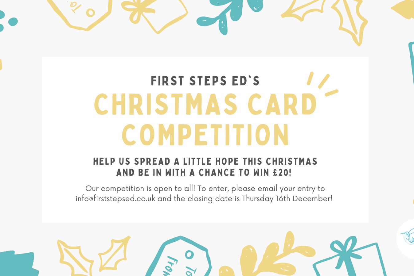 To enter, please email your entry to info@firststepsed.dev01.qoob.agency and the closing date is Thursday 16th December! (Winners will be contacted on Monday 20th December)